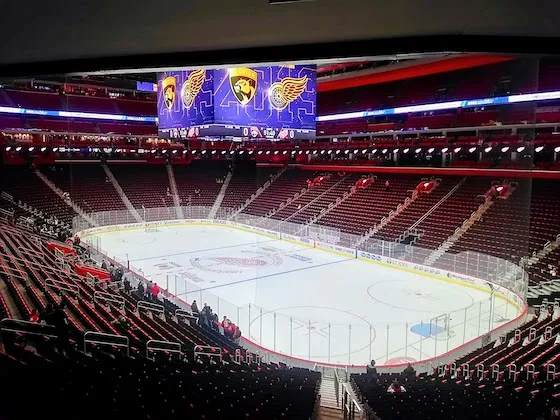 Little Caesars arena is one of them that emits photogenic lights at night. That night was special. People were gathering at the center of Detroit to spend the last day of 2018. We were here. Our purpose was watching an ice hockey game.